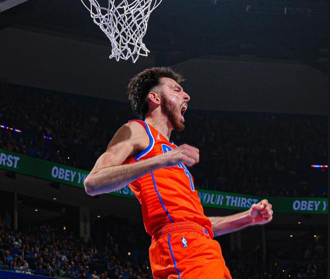 雷霆队此役尽管缺少了多尔特和杰伦威,却依旧打出了卫冕冠军的气势,亚历山大贡献了28分,外加11次助攻,3个抢断的数据,霍姆格伦砍下了23分,11个篮板的数据,值得一提的是,霍姆格伦100%命中率砍下20+10创造了队史纪录。除亚历山大和霍姆格伦之外,米切尔贡献了17分,乔也有18分入账。